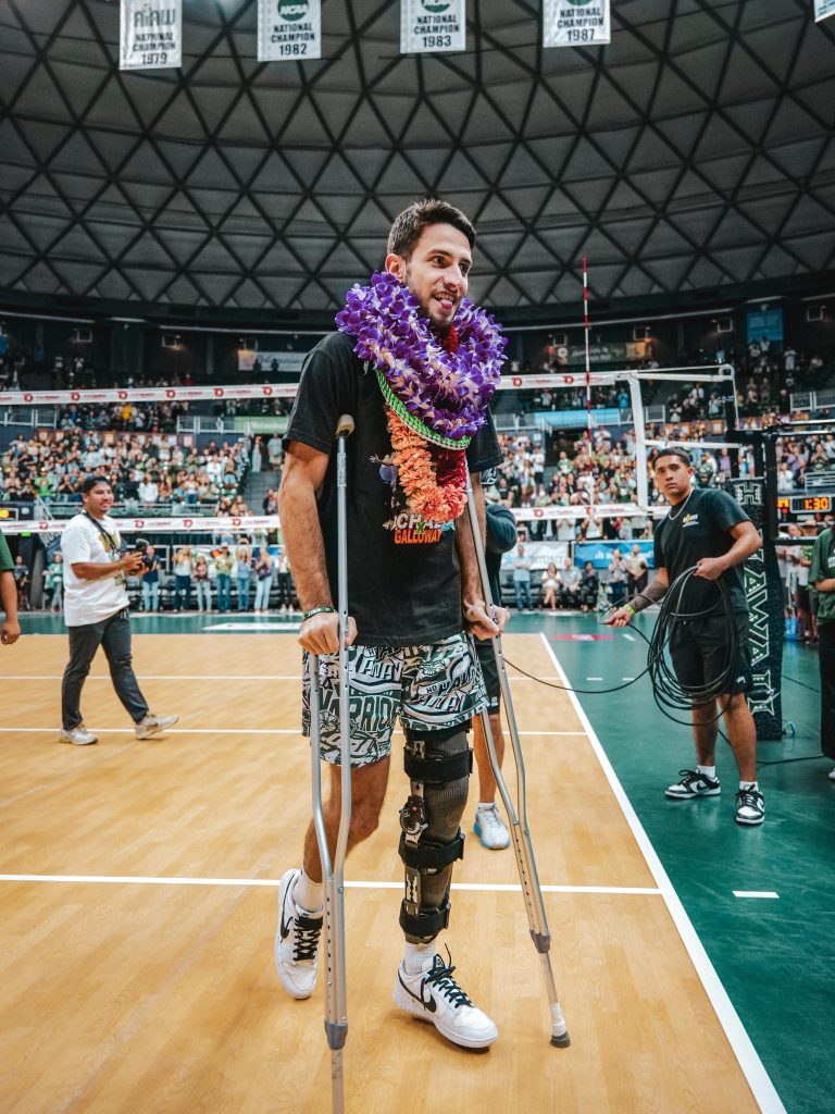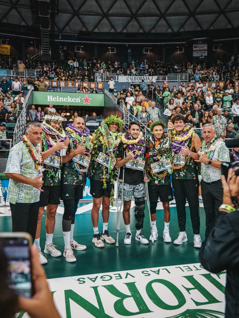 6 – Senior Night On The Island. There are Senior Nights. And then there are Senior Nights on the island. No one does it best to send out their seniors in style like the state of Hawai`i. Sure the start time of the festivities were on Hawaiian Time with the match going five sets (3 hours and 6 minutes) and included a red card to Head Coach Charlie Wade, but the celebration was just that much sweeter after Keoni Thiim slammed down the final point as UH won the set 15-12 and the match 3-2. A classy move by UH as they recognized the seven UCSB players who expect to graduate in the spring and while it took some time to honor each of UH’s six seniors, nearly all of the 8,924 in house stayed well into the night to celebrate the Rainbow Warriors. The lei were plentiful, the selfies were endless as all will remember yet another chapter in the storied Senior Night festivities here at UH. While the season is not done, mahalo to those six: Austin Buchanan, Kevin Kauling, Alaka`i Todd, Guilherme Voss, Chaz Galloway and Spyros Chakas.