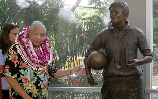 ♦ A statue to honor Thompson was unveiled at the Stan Sheriff Center on Oct. 28, 2007. The sculpture was created by nationally-renowned artist Jan-Michelle Sawyer, a former professor at UH and Thompson’s longtime friend.