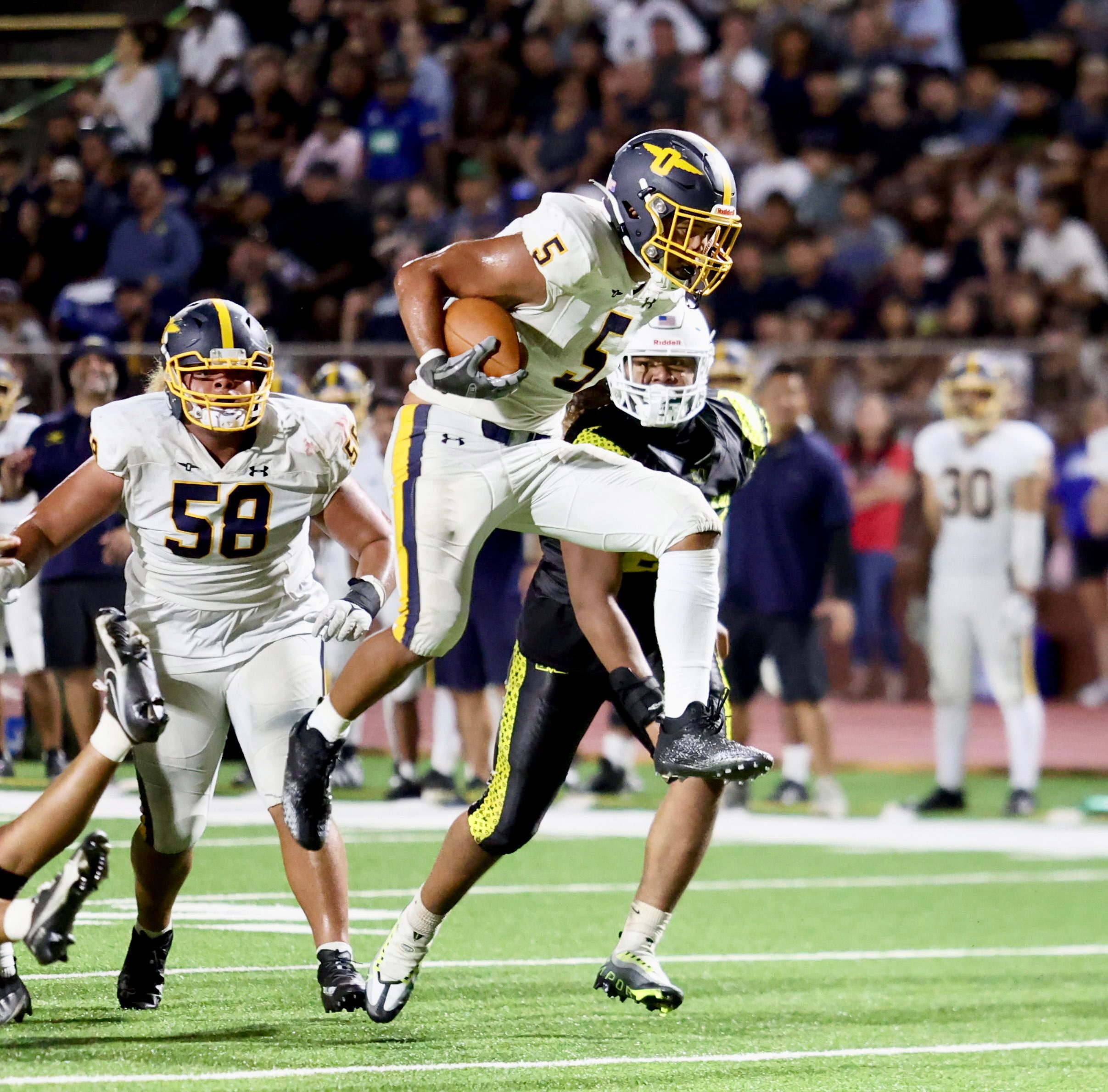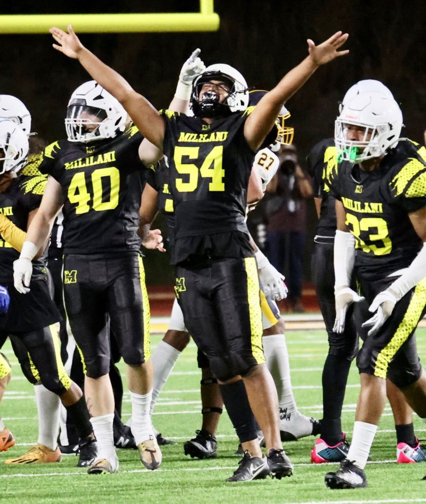 A good-sized crowd of about 3,500 watched the Buff ‘N Blu rally from a 14-7 halftime deficit to take the lead for good late in the third quarter and then stop Mililani at the Punahou 15-yard line on the game’s final play.