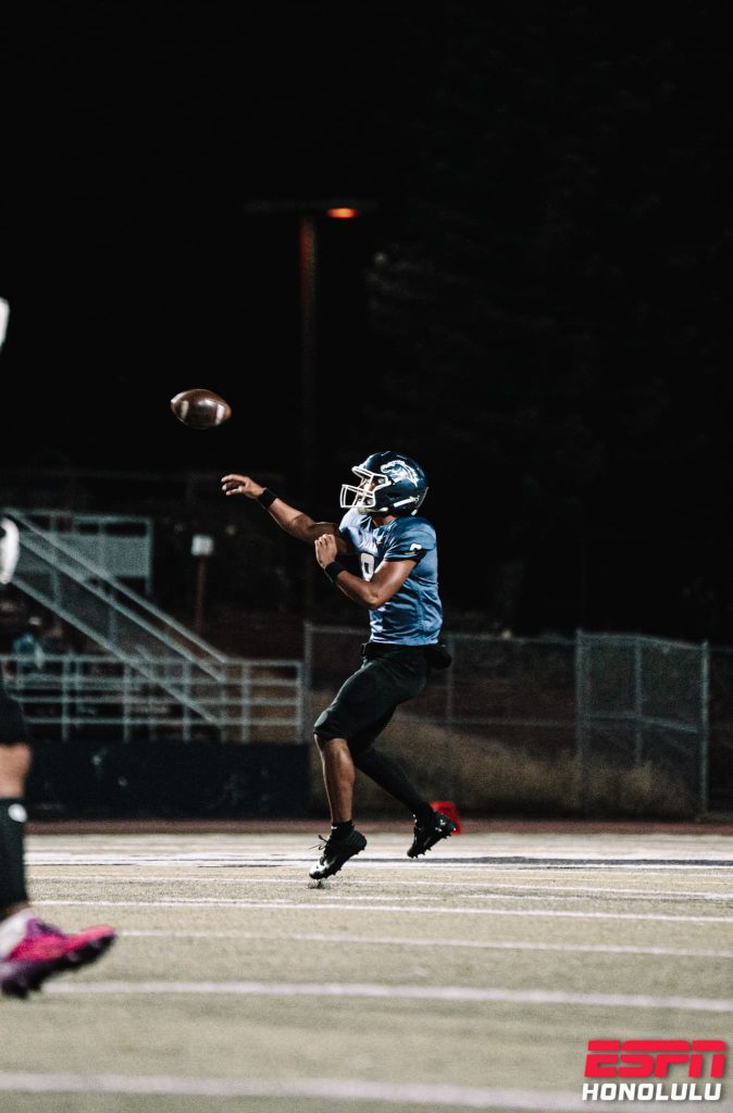 Sophomore quarterback CJ Villanueva starred in No. 10 Iolani’s 59-26 victory over Kaimuki on Saturday afternoon. The 5-foot-10 signal caller was almost perfect passing the ball for the Raiders. Villanueva completed a staggering 27 of his 28 passes, throwing for 286 yards and four touchdowns through the air, while also rushing in for another score.