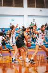 The Konawaena Wildcats ball out in their first game of the 2023 Punahou Invitational against the San Clemente Tritons from California and win 59-25. Mikela Salazar-Harrell scored a game-high 23 points, including six 3-pointers, and Haikela Hiraishi added 15 points, including three 3-pointers, to help the Wildcats pull away early and then coast to victory. Konawaena closed out the first period with a 10-2 run to lead 18-8, then outscored the Tritons 13-2 in the second period to go ahead 31-10 at the half.