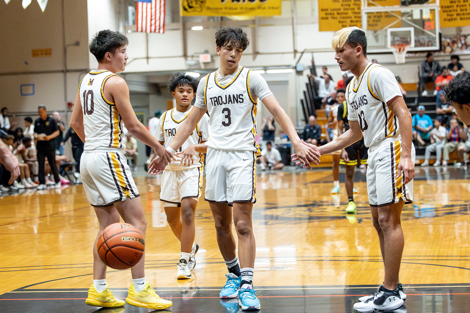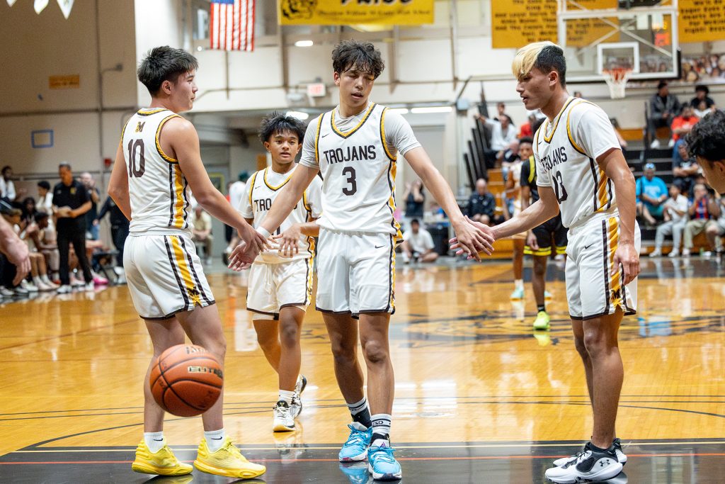 After Stevens swished a jumper from the right baseline to push the lead to 46-41 with 4:46 left, the Trojans responded with Gabriel’s free throw and back-to-back layups by Dorn to tie it at 46-46 with 2:11 remaining. Mililani then took a 48-46 lead on Virtudes’ driving layup with 38 seconds on the clock, only to see the Mules go back in front for good on Stevens’ clutch 3-point jumper with 6.8 ticks left.