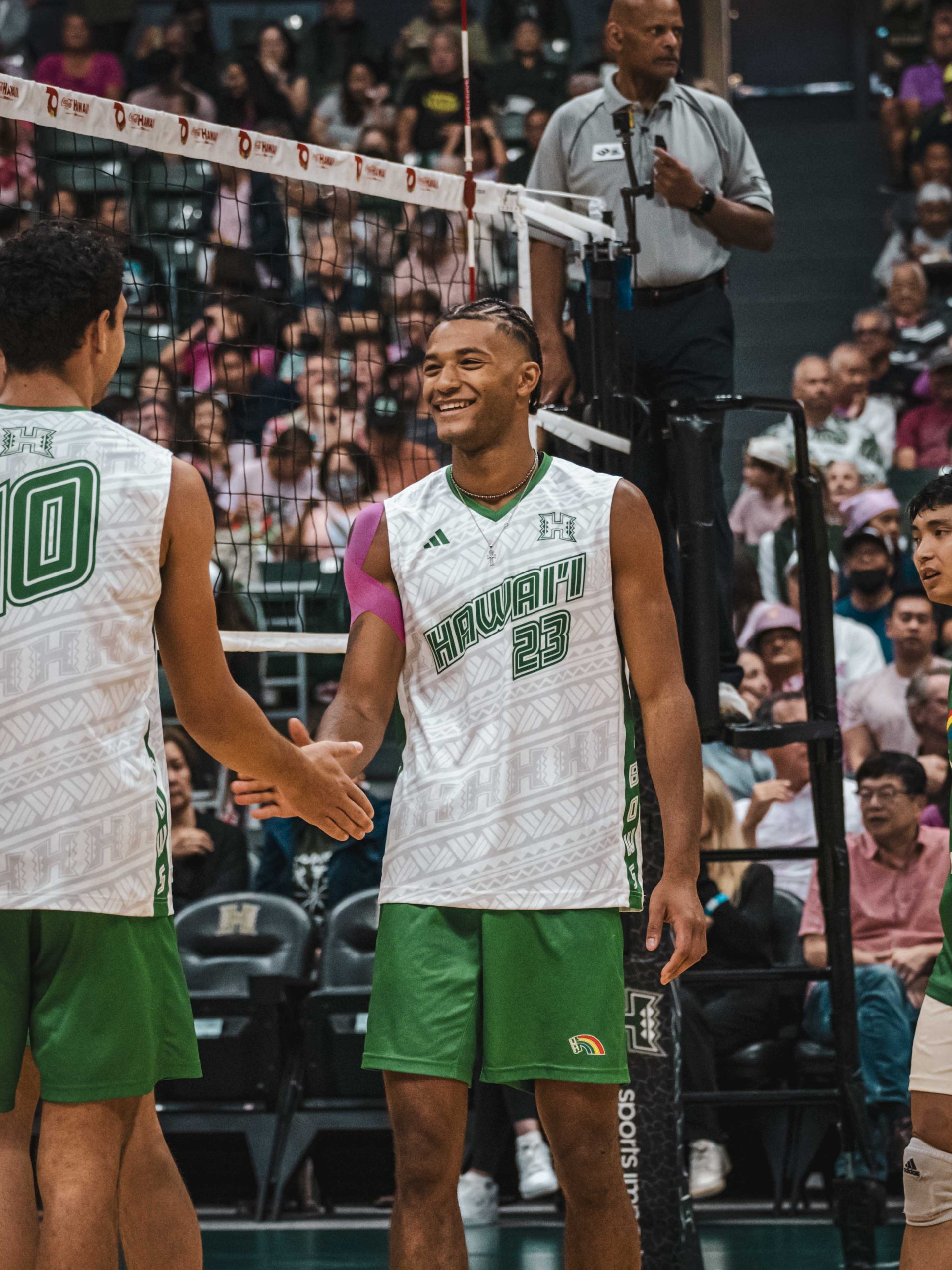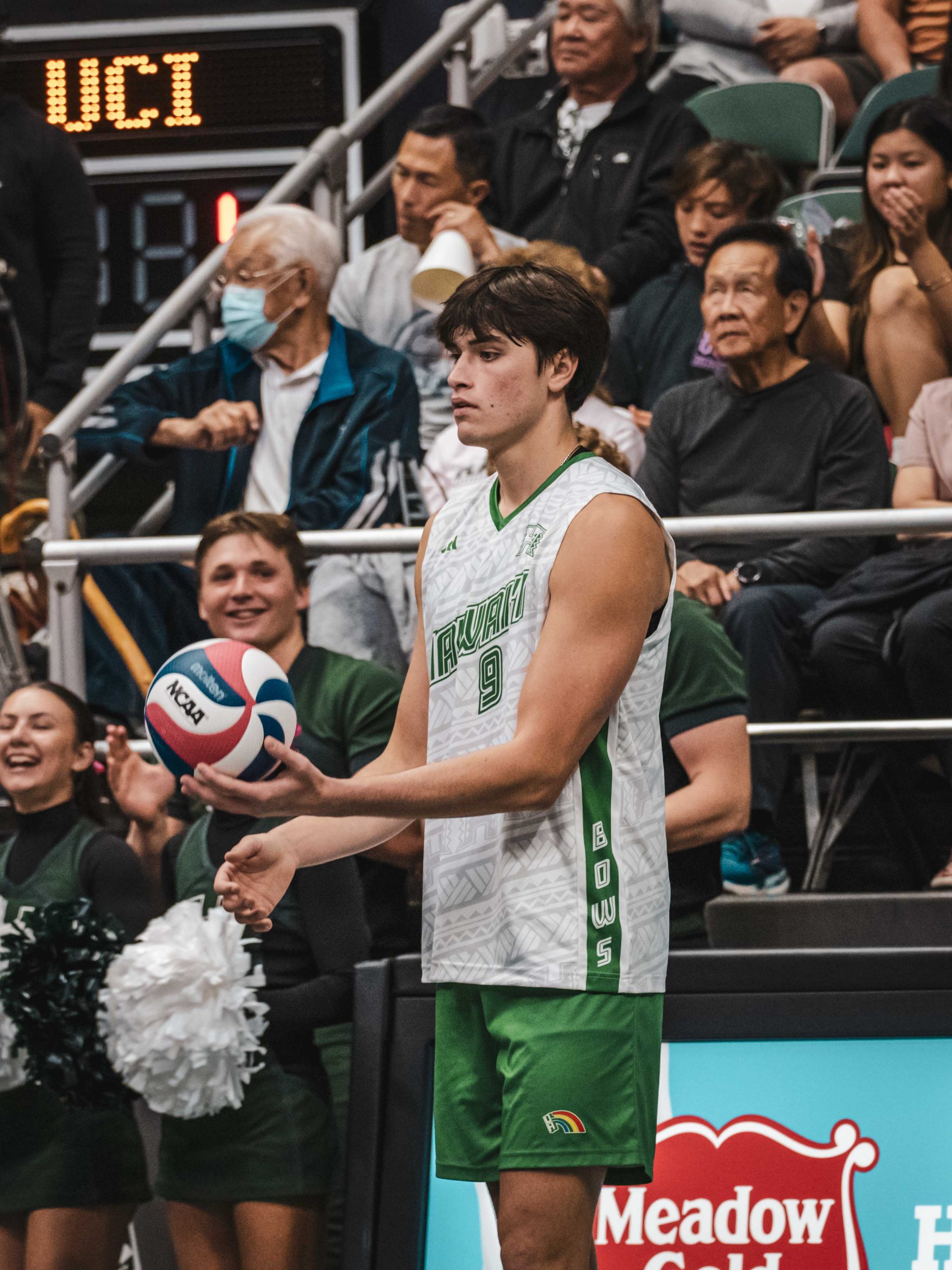 6 – 🤙🏻 #WarriorNation. One of the hottest tickets in town has been to catch Hawai`i Men’s Volleyball in action. They led the nation last year (averaging 6,297 per home contest) and this year it’s up to 6,552 per match. While lower campus was uber busy with three home games starting within 65 minutes of one another (6:00 pm for Softball, 6:35 pm for Baseball and 7:05 for Men’s Volleyball), it was Men’s Volleyball shining yet again. Night one of the UCI series saw #WarriorBall25 draw over 7,000 fans for a second time this season (7,024). Two nights later and not competing with Baseball as they ended roughly an hour before first serve, the Bows hosted their second consecutive crowd north of 7,000 (7,220) for the Sunday match. Family night coupled with youth volleyball night, #PackTheStan became #PackedTheStan as it was loud throughout the entire match. With more Friday and now Saturday home matches on the horizon, expect some even larger crowds and who knows, there might be a sellout…or two…or maybe even three.