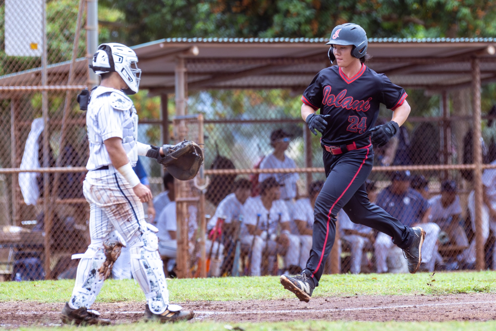 Tuesday’s title-clinching game was actually a continuation of a game that was suspended by rain on Monday afternoon at Central O’ahu Regional Park, where ‘Iolani had led, 2-1, in the bottom of the second inning when the field was declared unplayable.