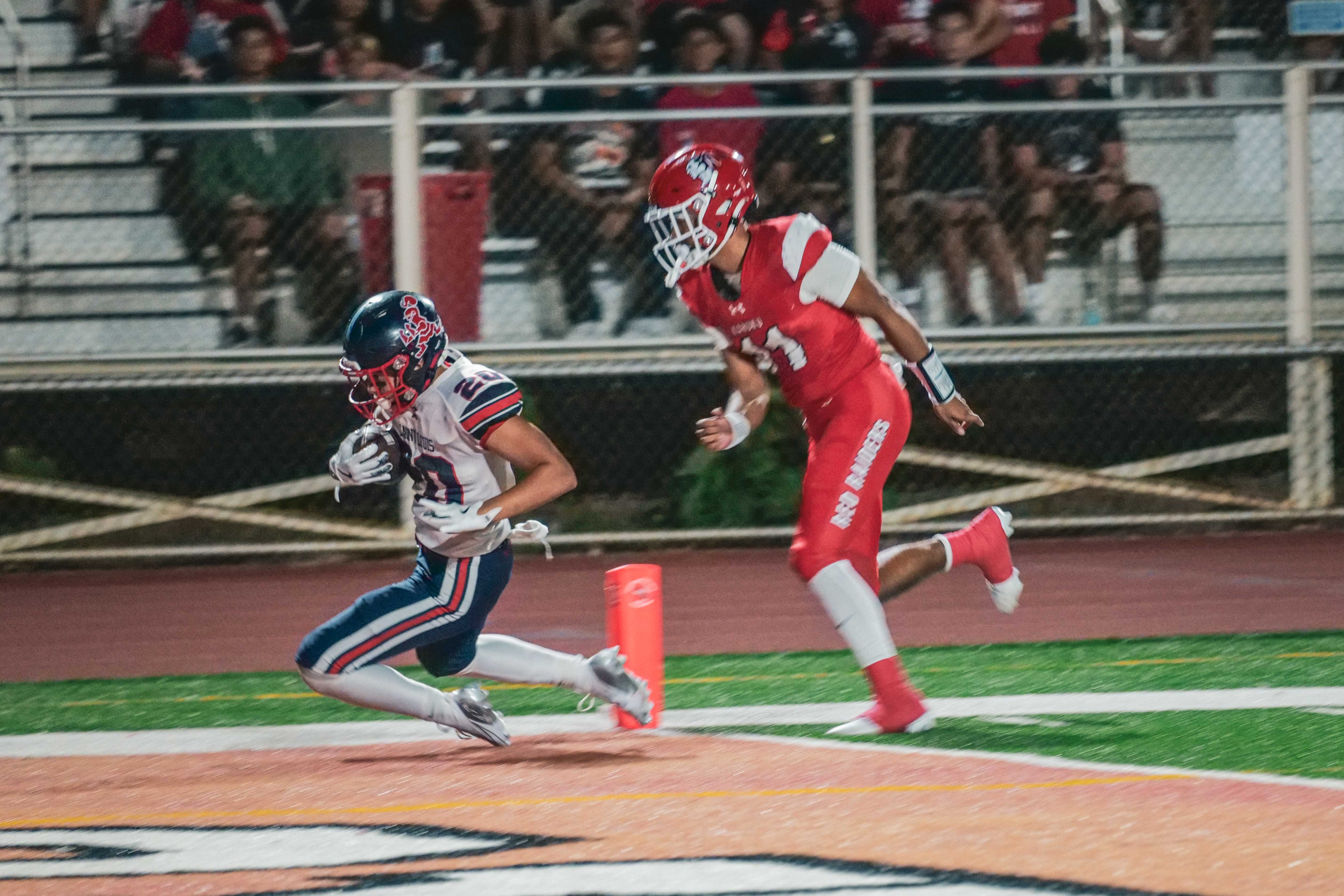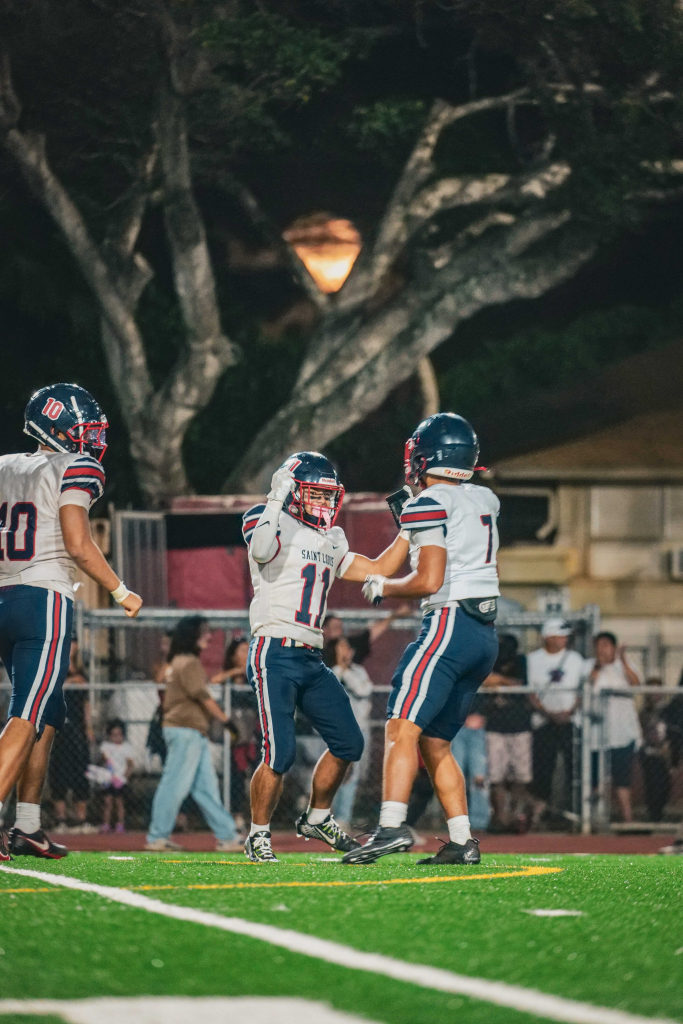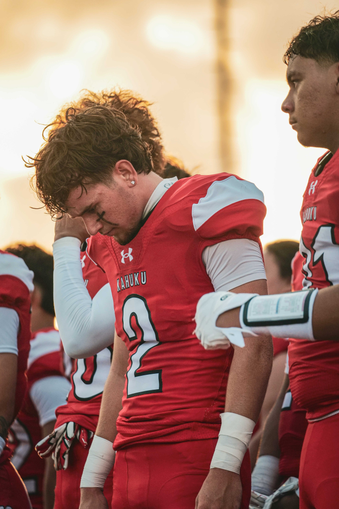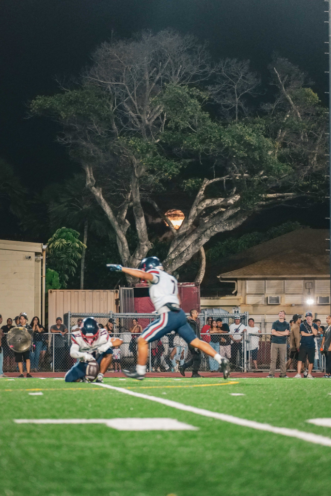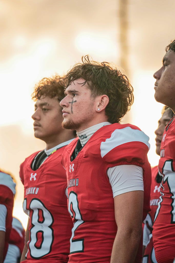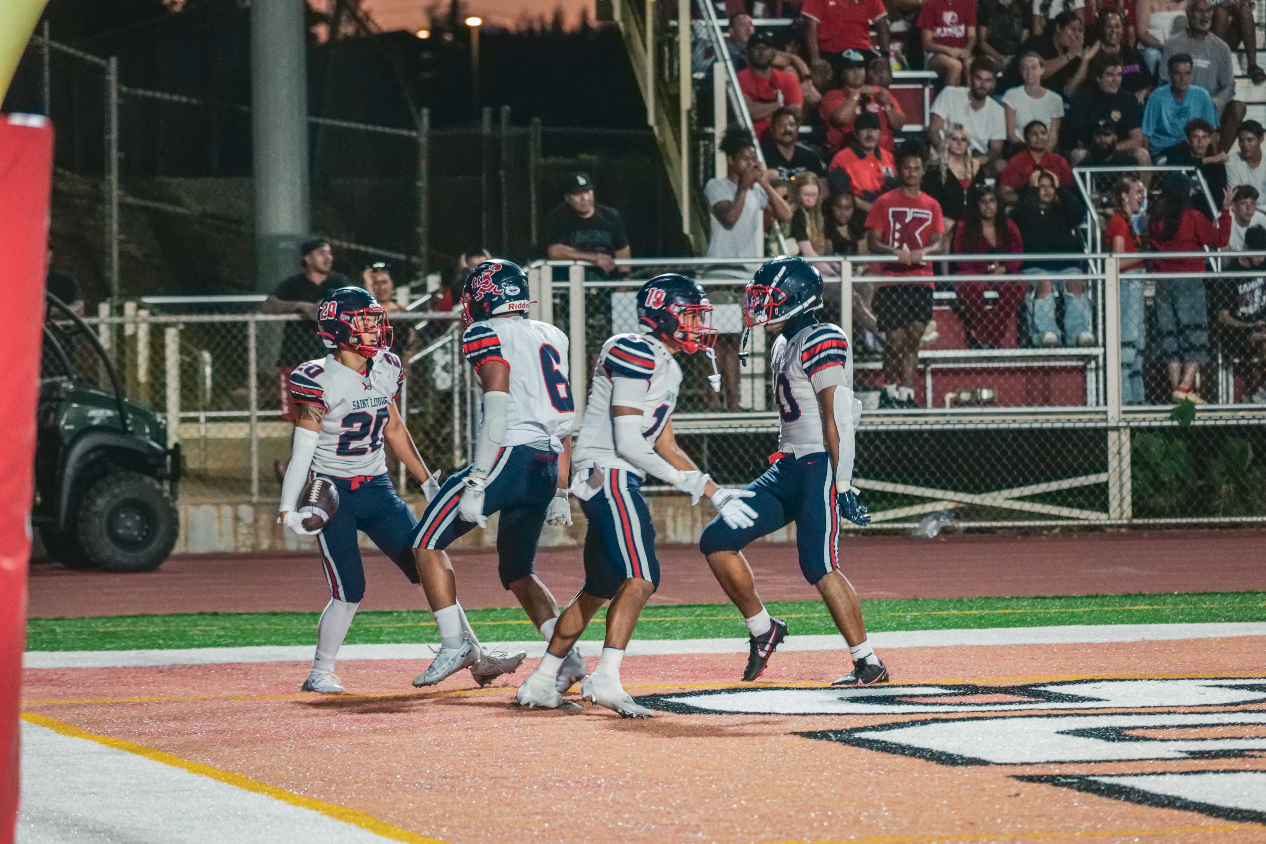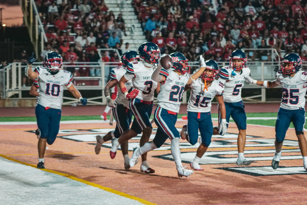 Senior quarterback Nainoa Lopes threw for 157 yards, one touchdown, and a late-game rushing score. The Crusaders’ defense held the Kahuku offense to just 120 total yards. Saint Louis’ senior DB, Urijah Belaras scored the first points of the game on a 44-yard pick six.
