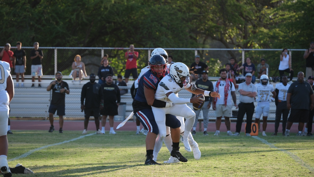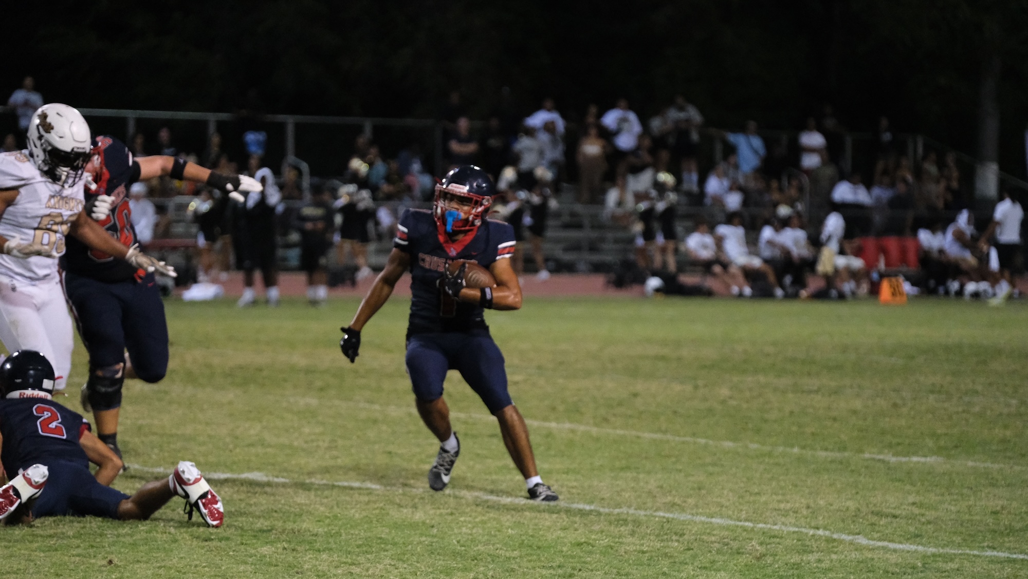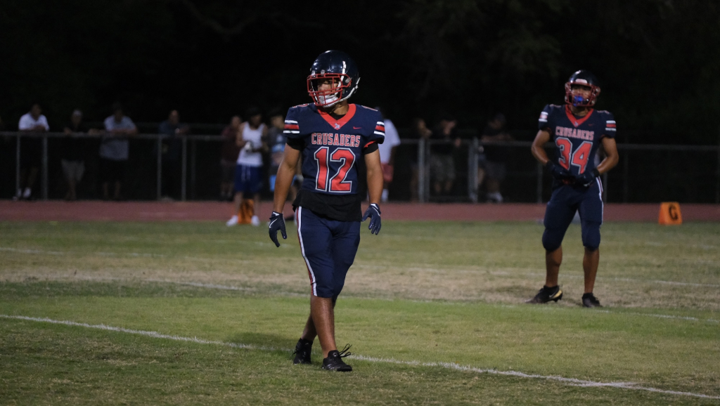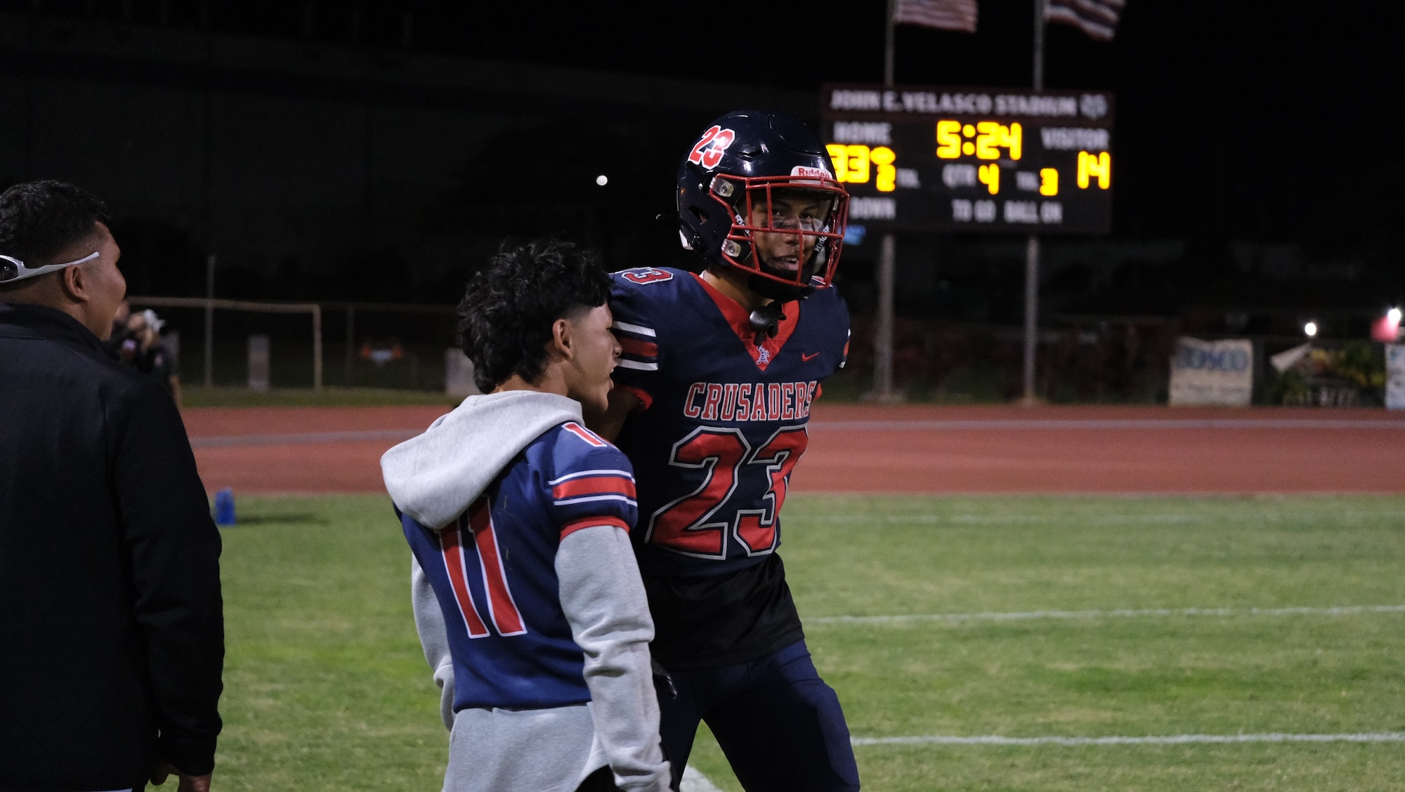The Crusaders responded by opening the second half with a quick 5-play, 55-yard possession culminating in Aizen Costales-Torres’ 6-yard run to paydirt. The PAT attempt failed, leaving the score at 14-13.