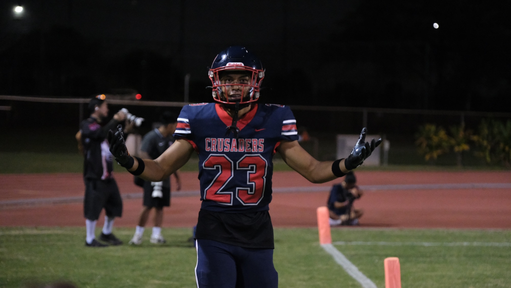 Then after another three-and-out by Bishop Montgomery, the Crusaders marched 79 yards in just six plays, capped by Tenari Fuamatu-Ma’afala’s 24-yard touchdown scamper to stretch the lead to 27-14 with 4:25 remaining in the third quarter.