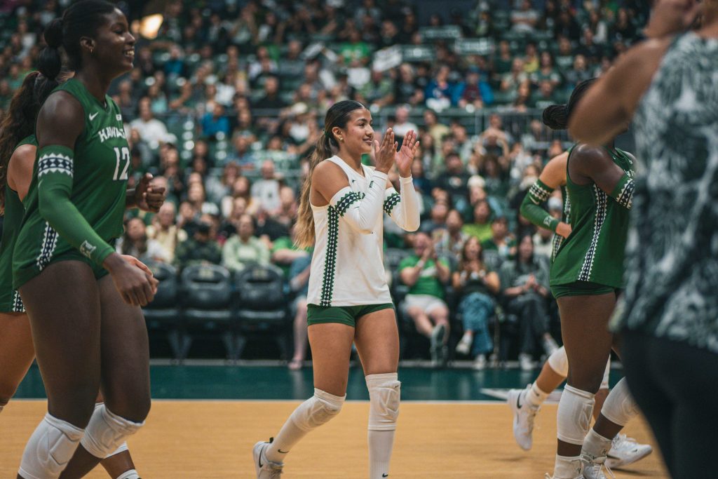 Despite the tough weekend, new faces for the Rainbow Wahine shined at the Stan Sheriff, including freshman outside hitter and Kahuku alum Cha’lei Reid.