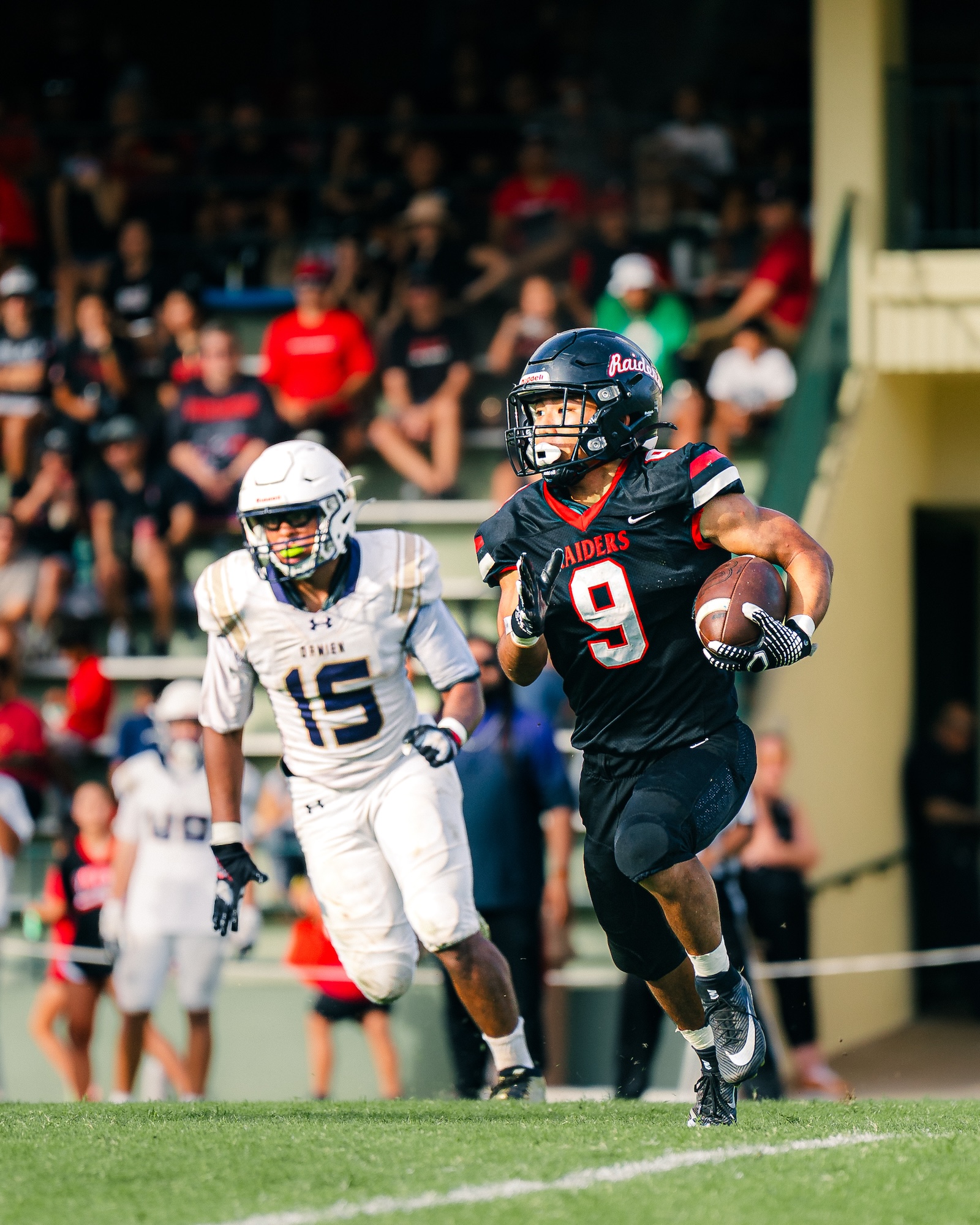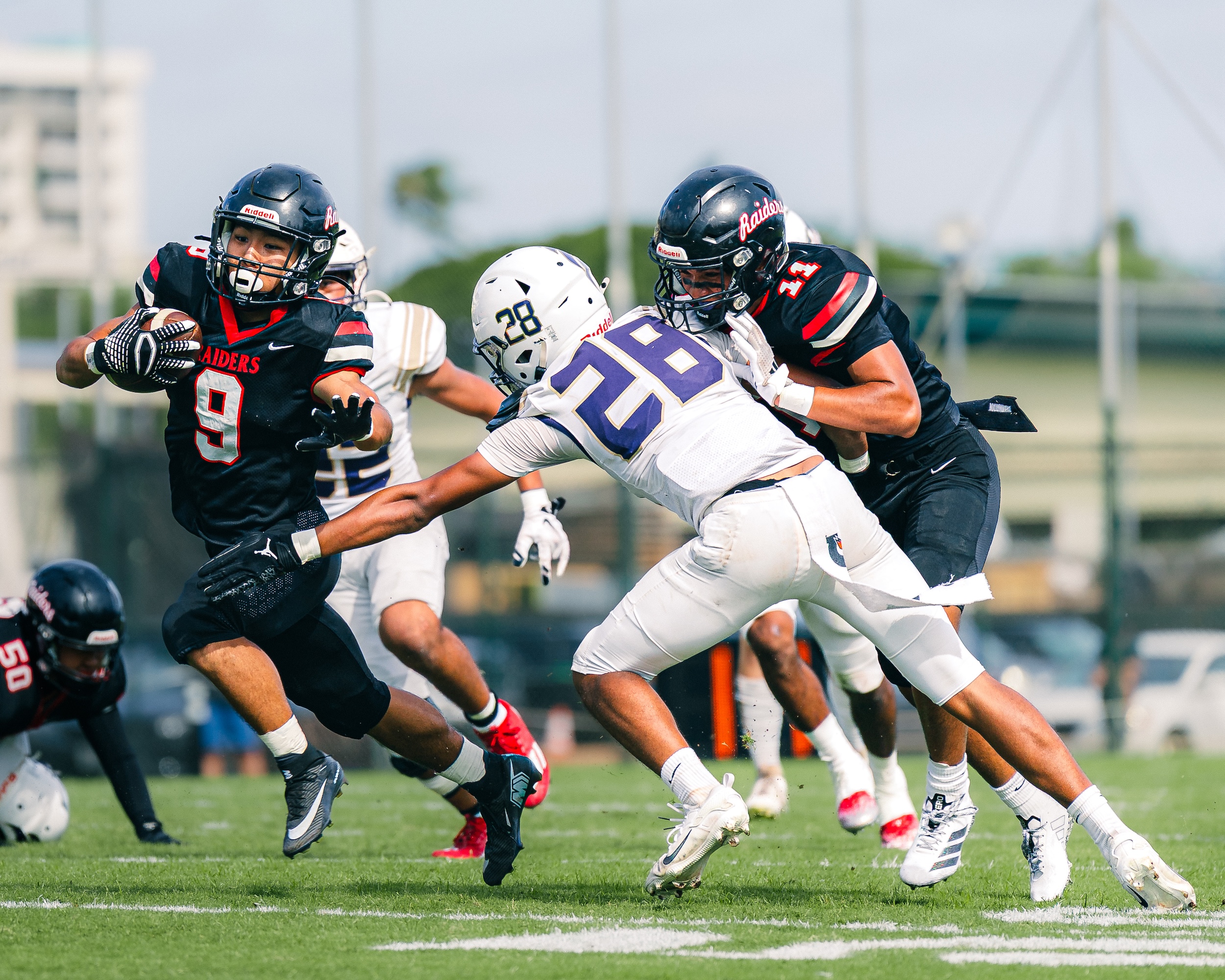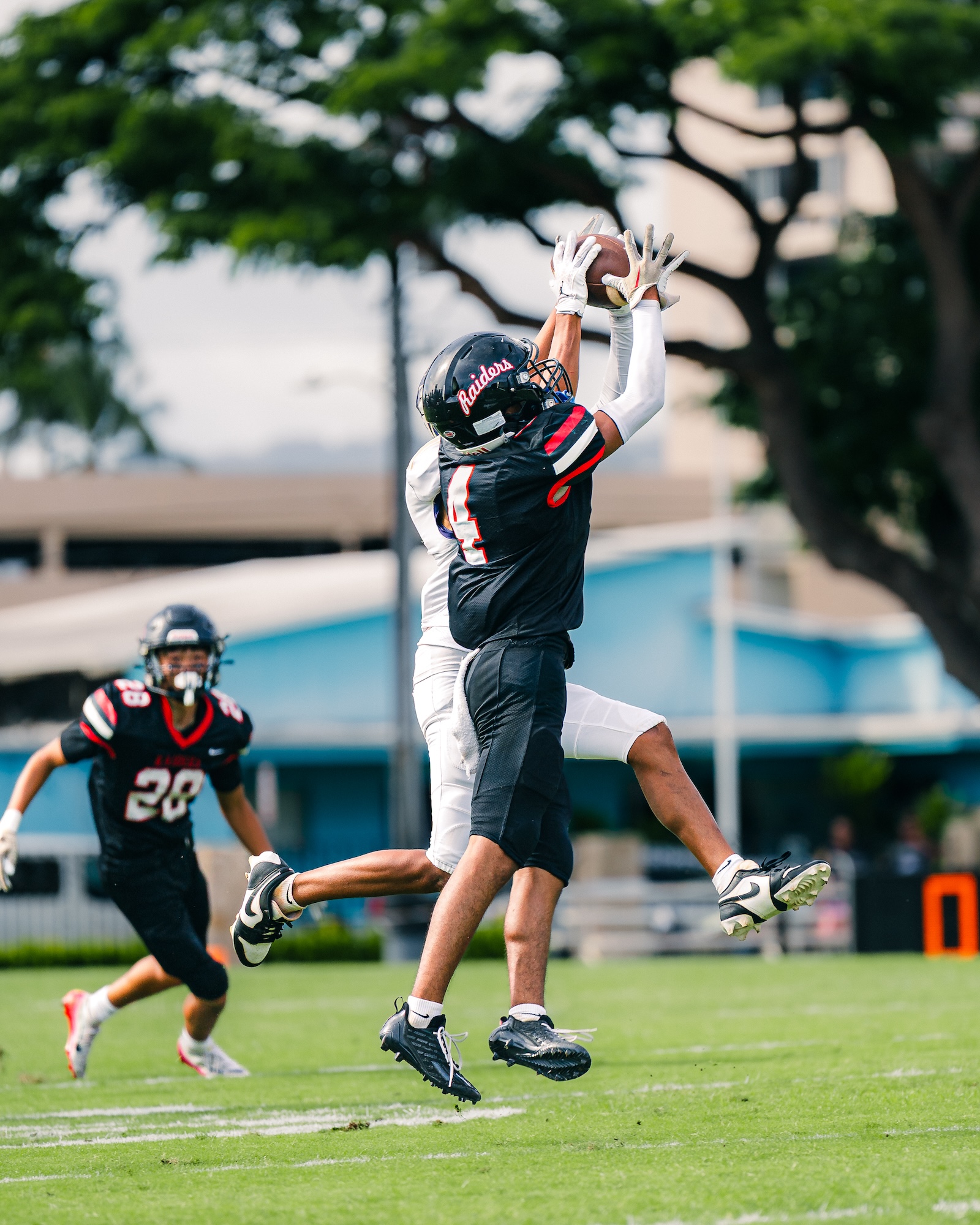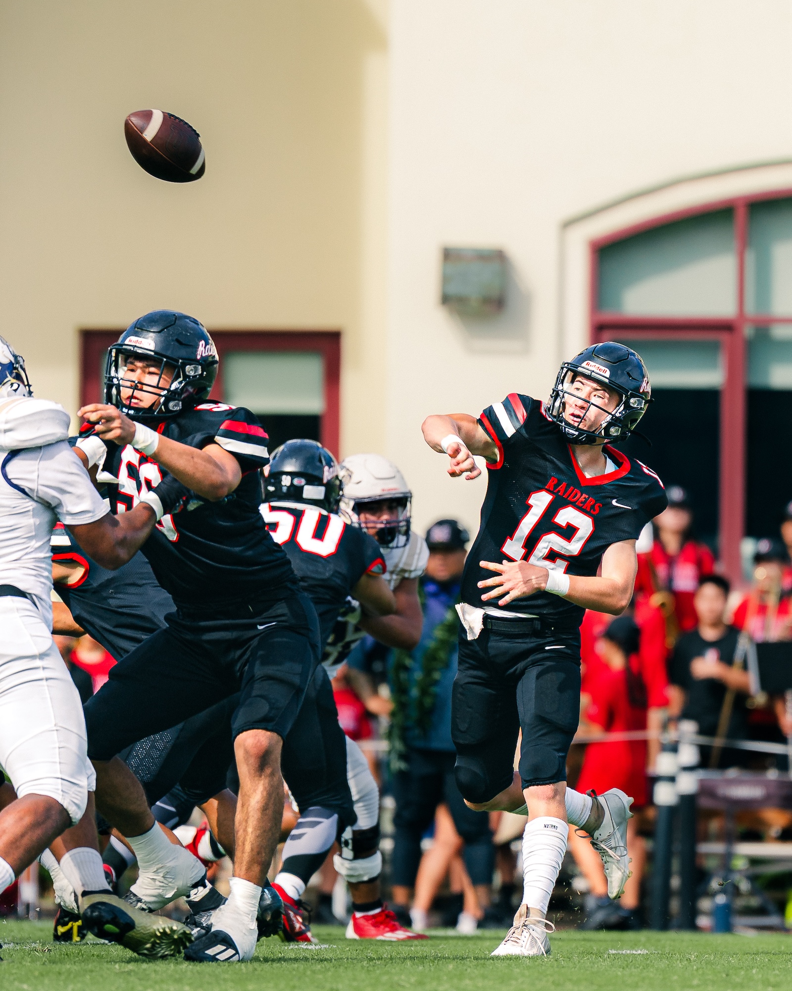 Things then looked encouraging for the Raiders after Zack Bagoyo recovered the ensuing onside kick at midfield, and the Raiders advanced to the 30 eight plays later. But on fourth-and-14, a downfield pass fell incomplete and Damien regained possession. After a three-and-out, ‘Iolani got the ball back, but an interception three plays later killed any hopes of a comeback.