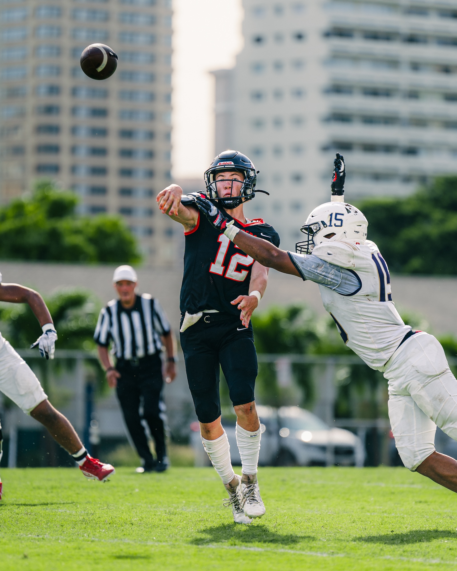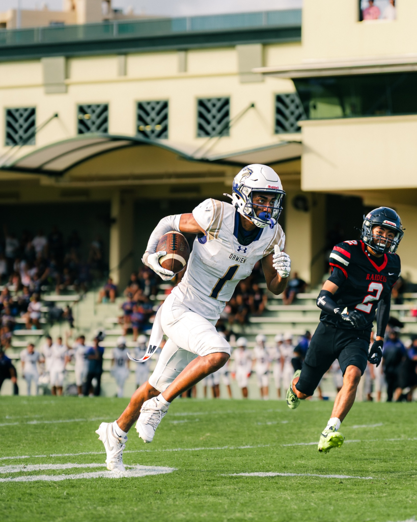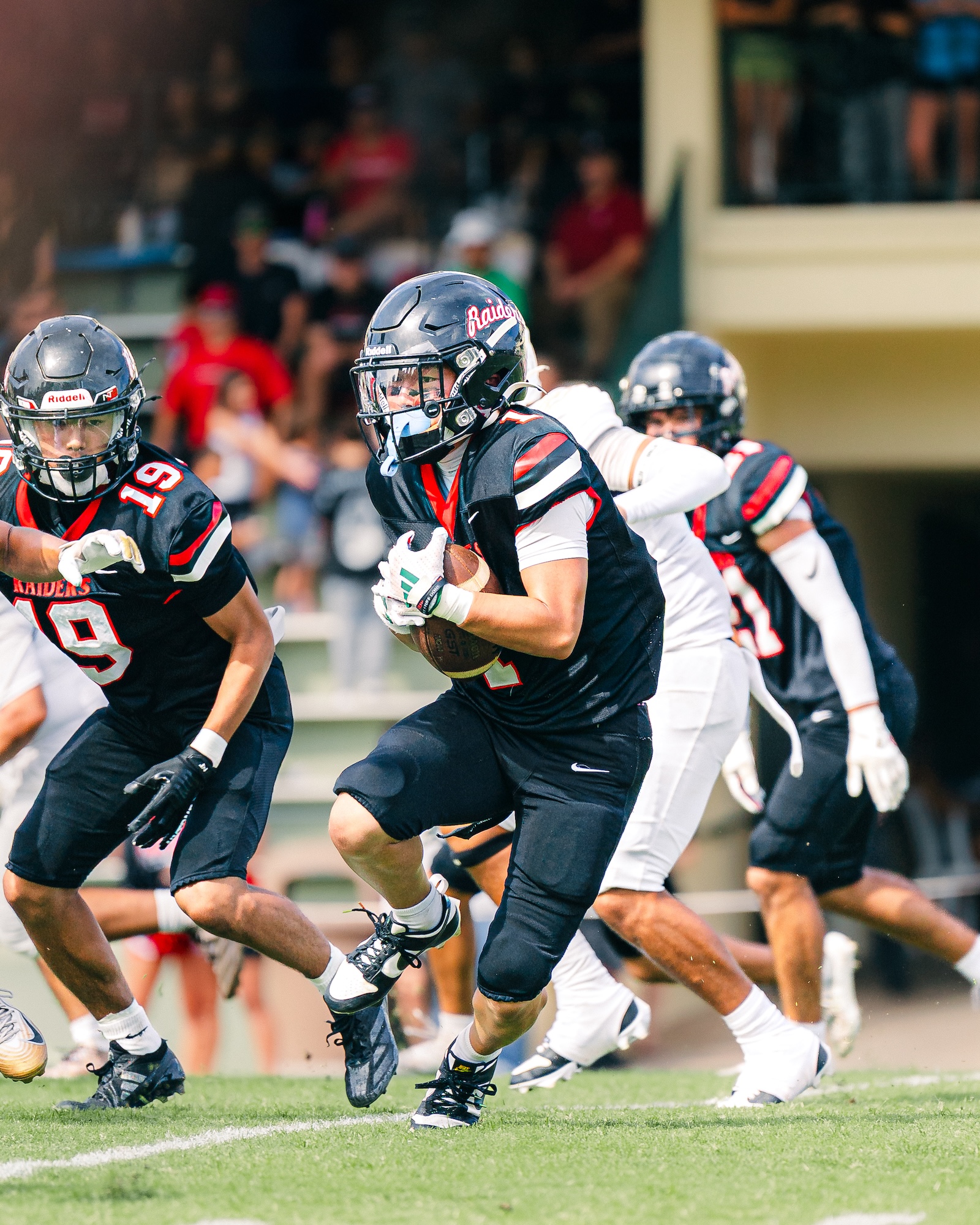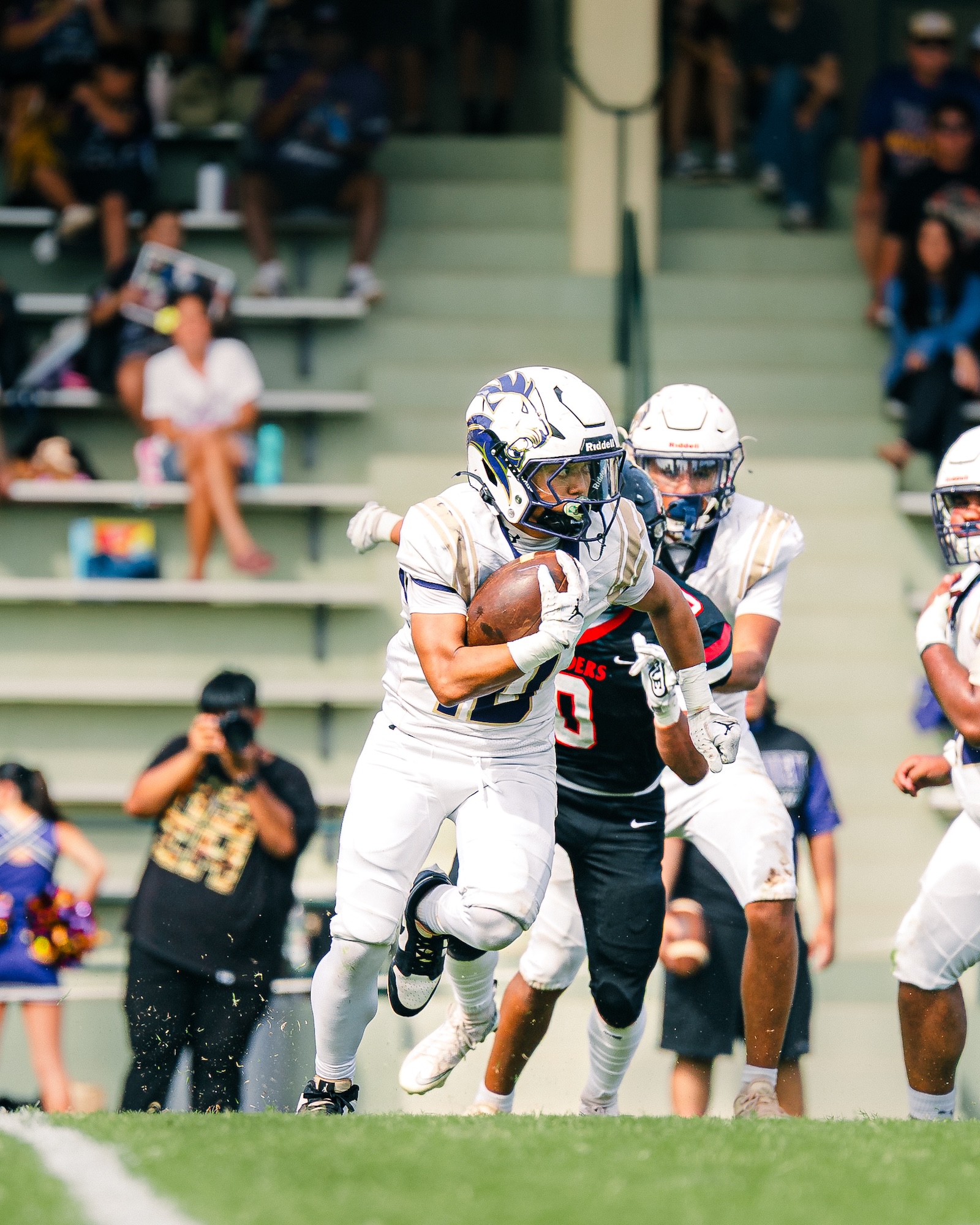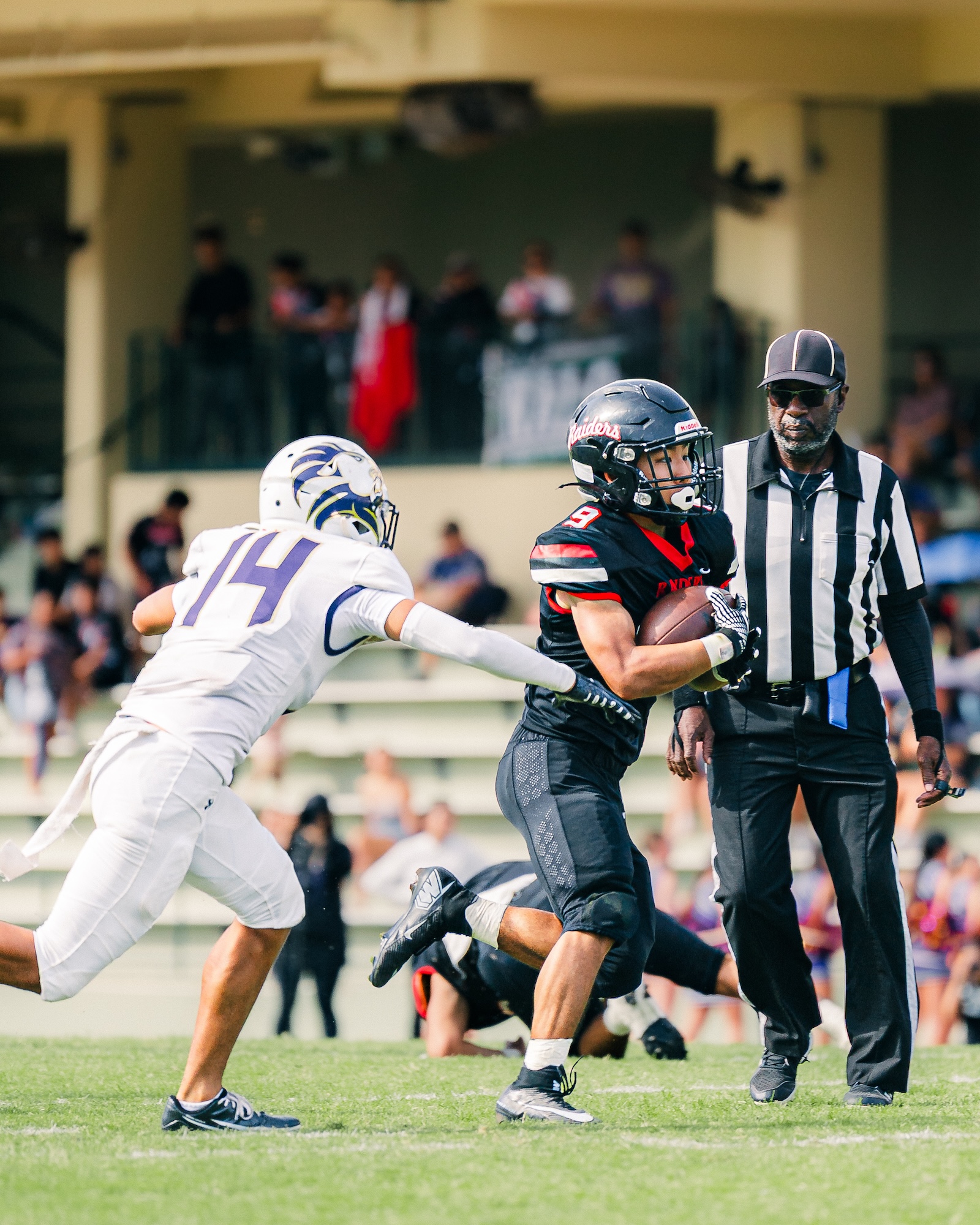 Things then looked encouraging for the Raiders after Zack Bagoyo recovered the ensuing onside kick at midfield, and the Raiders advanced to the 30 eight plays later. But on fourth-and-14, a downfield pass fell incomplete and Damien regained possession. After a three-and-out, ‘Iolani got the ball back, but an interception three plays later killed any hopes of a comeback.