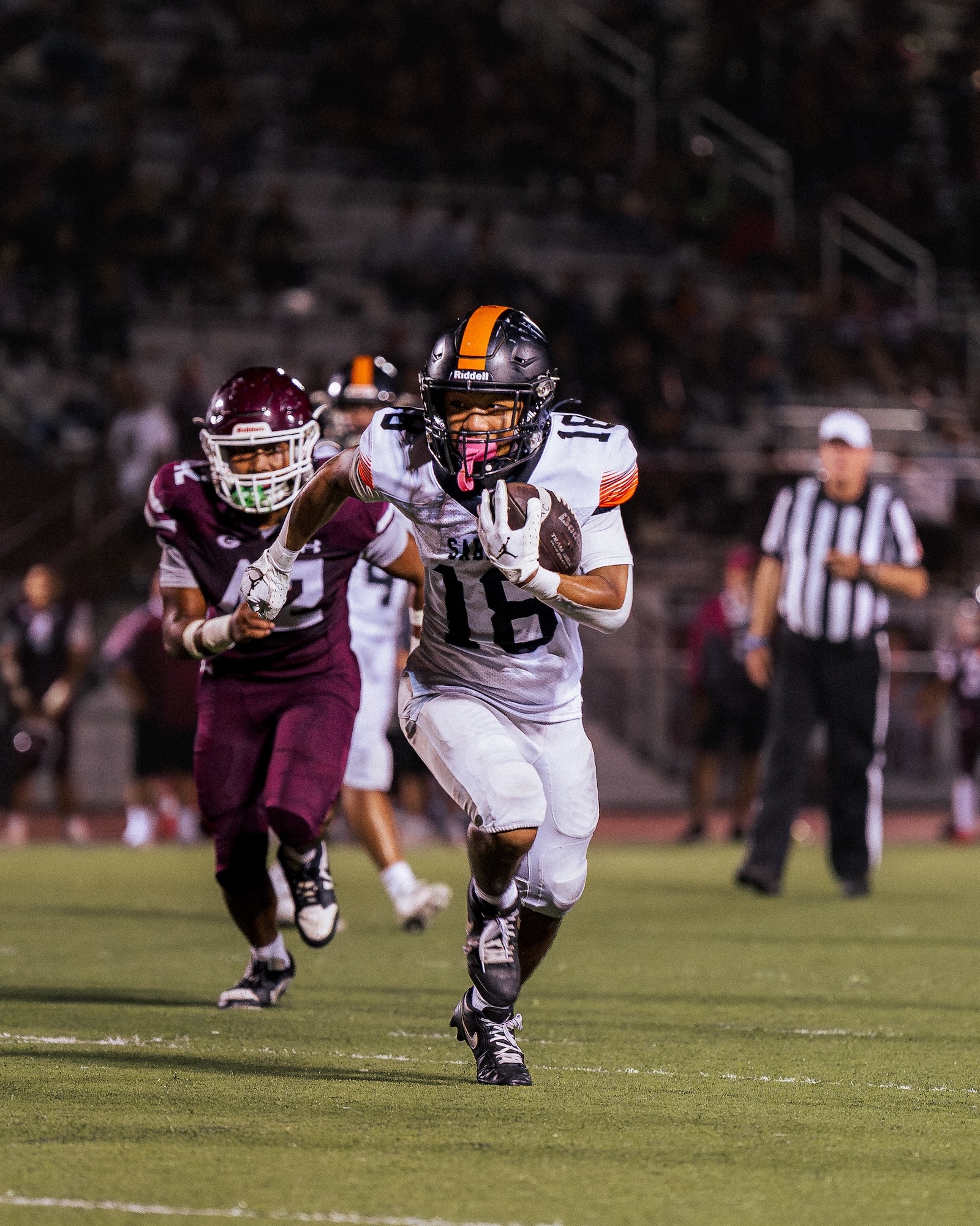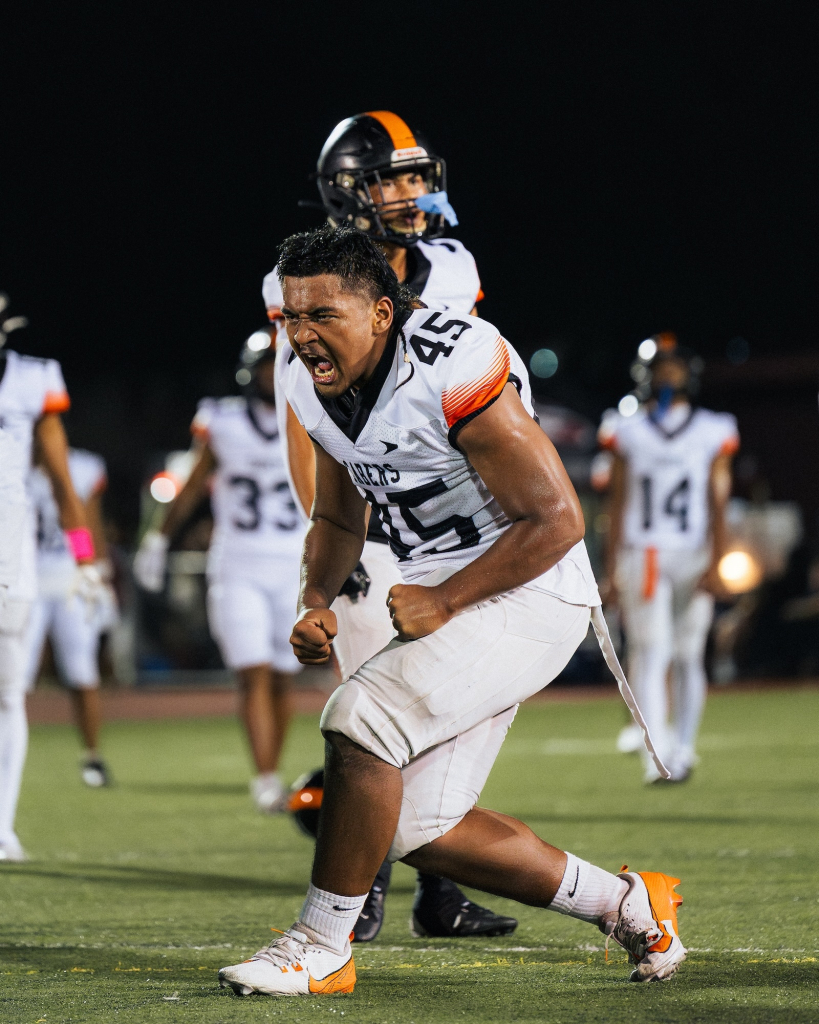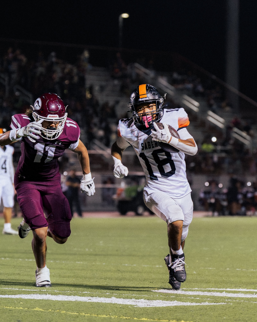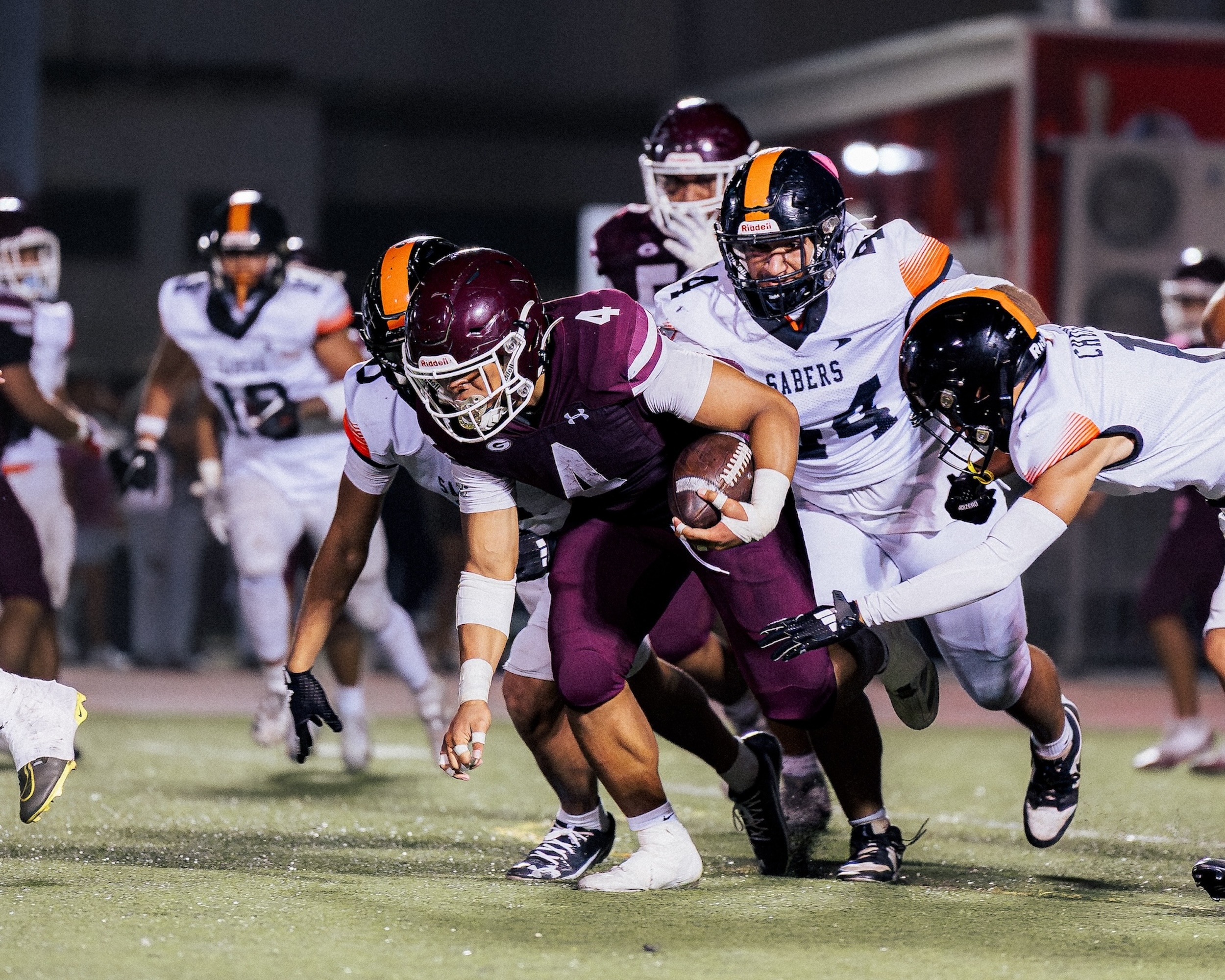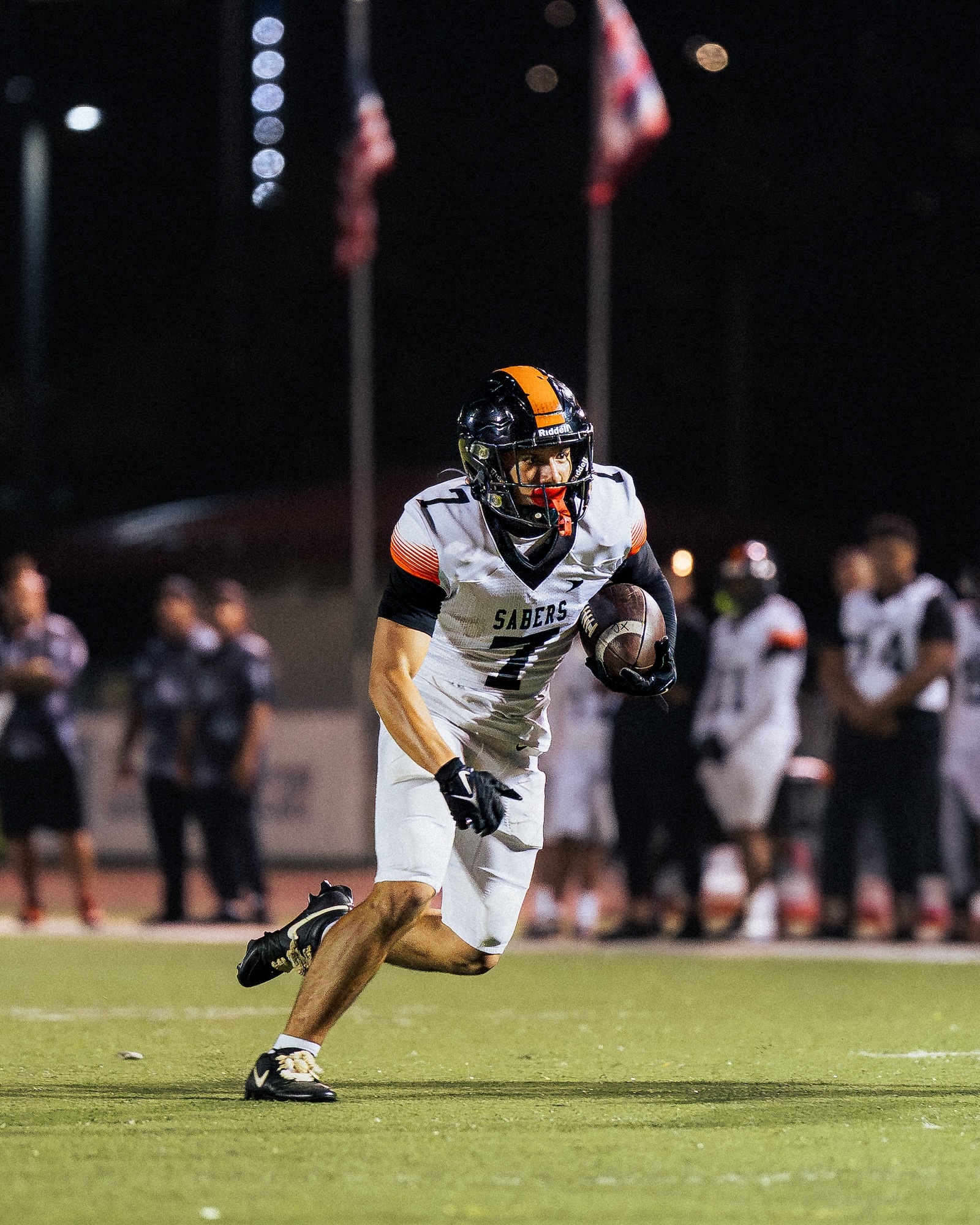 The Sabers stretched the lead to 30-0 late in the third quarter after an eight-play, 68-yard drive capped by James Tuazon’s 15-yard touchdown scamper, and then Taulia Lave’s 21-yard pick-six interception return on the very next play from scrimmage triggered a running clock with 2:48 remaining in the third.