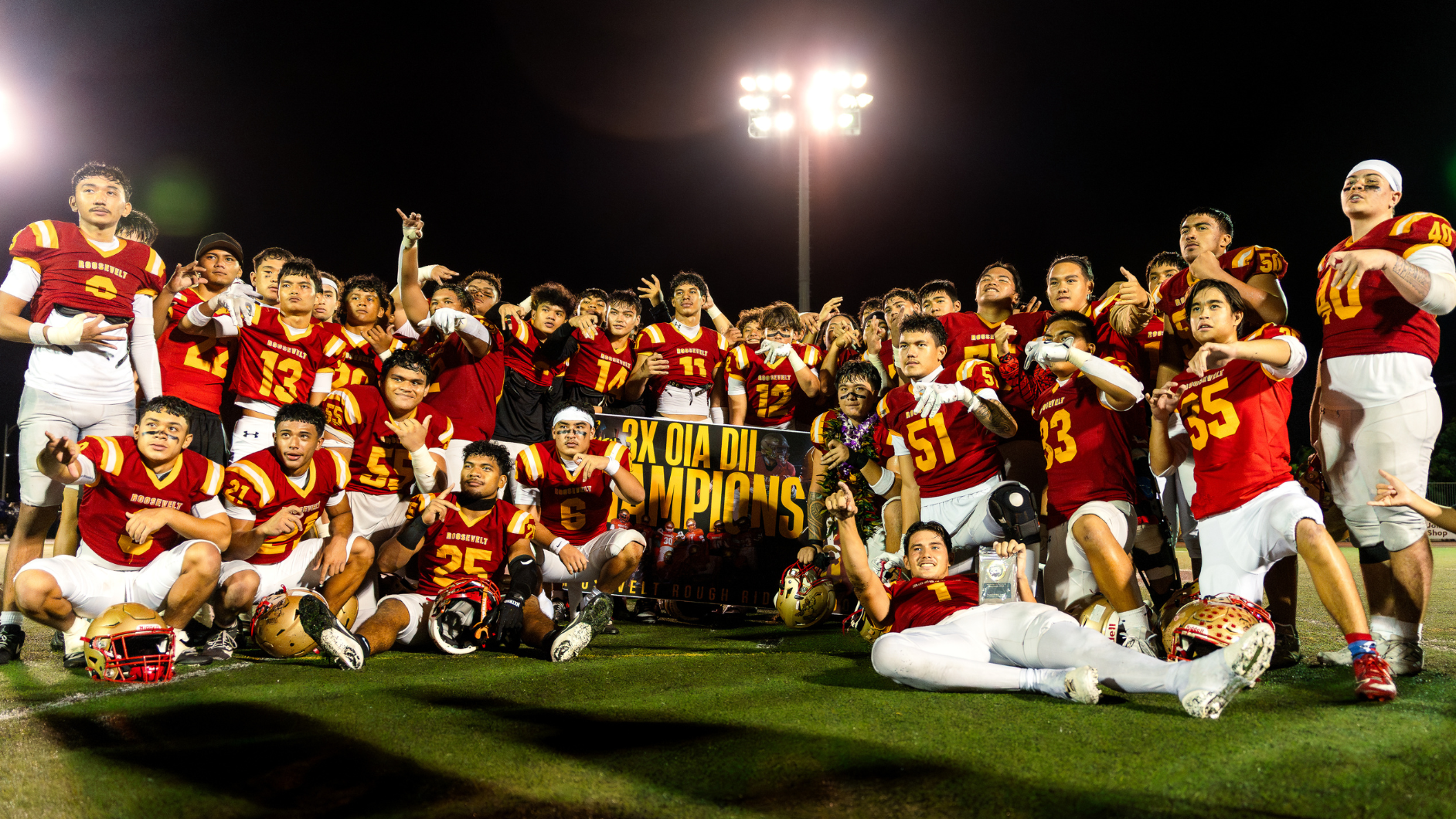 The Roosevelt Rough Riders cemented their dynasty on Thursday night, defeating Pearl City 31–14 at Farrington High School to capture their third consecutive OIA Division II championship.