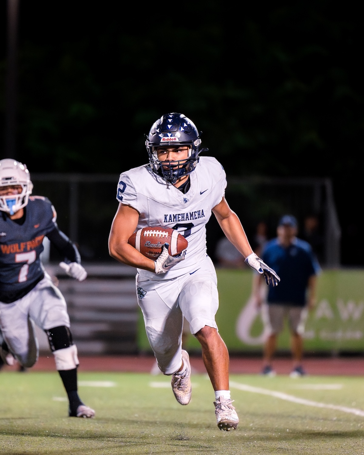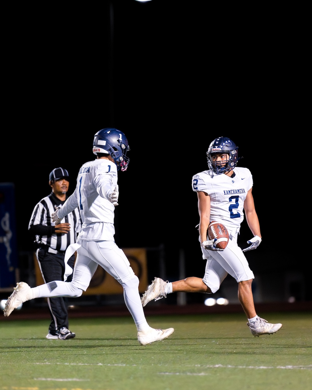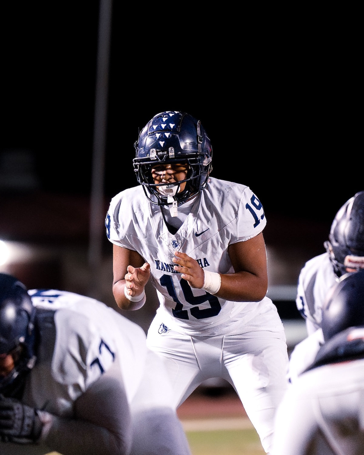 The Warriors broke open the game early in the fourth when Makekau connected on a medium route Wong, who darted upfield and then cut across to the right side and outran defenders all the way to the end zone, to help extend the margin to 28-6. Makekau then essentially sealed the victory with a 1-yard quarterback keeper with 8:57 remaining as Kamehameha-Hawai’i went up, 35-6.