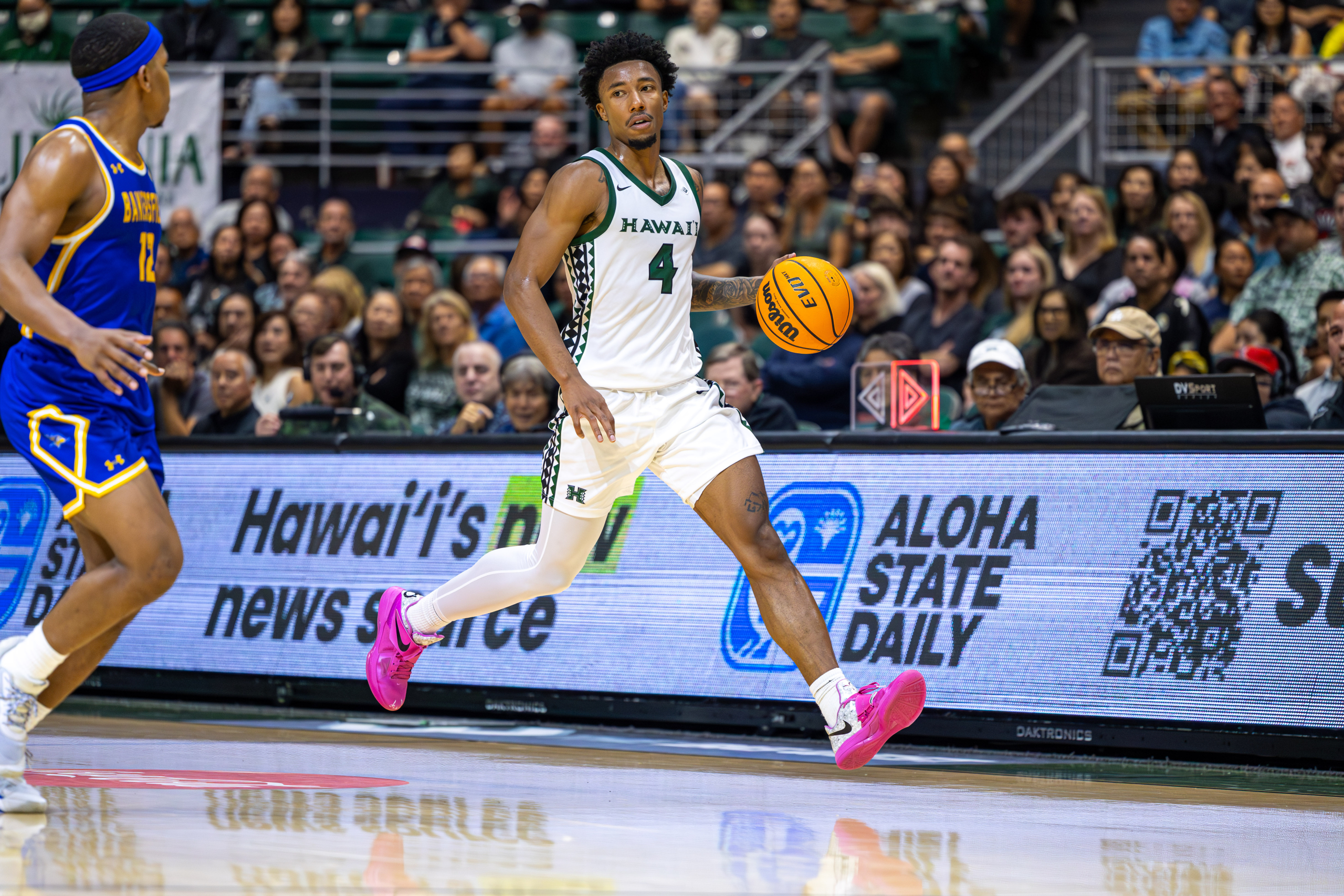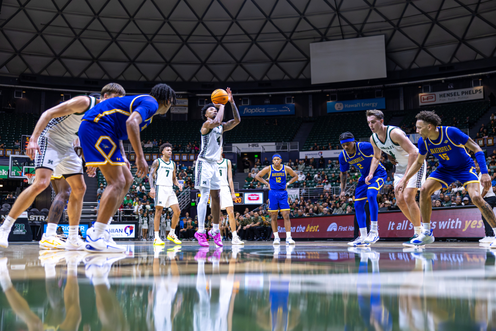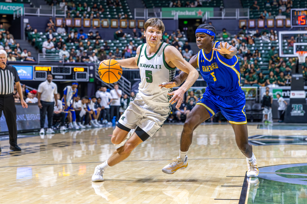 With 19:35 left in the first half and the score tied at 0-0, graduate guard Dre Bullock took the inbounds pass as Cal State Bakersfield set up a full-court press, looking to force an early turnover against the University of Hawai‘i Rainbow Warriors.