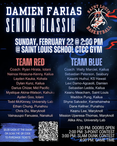 The Damien Farias Senior Classic brought together Hawaiʻi’s top high school seniors Sunday at the Clarence T.C. Ching Gym on the campus of Saint Louis School, celebrating the next generation of island basketball talent.