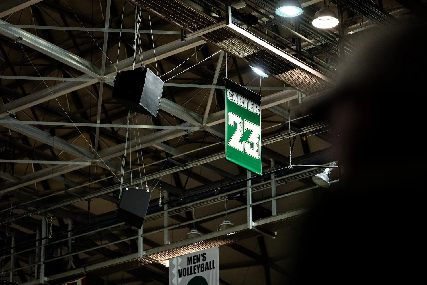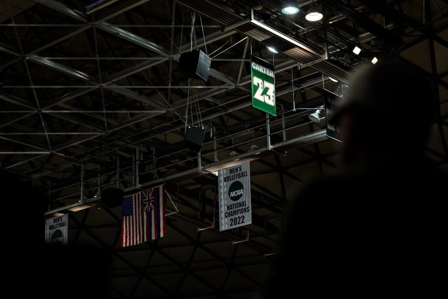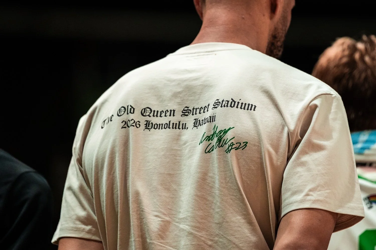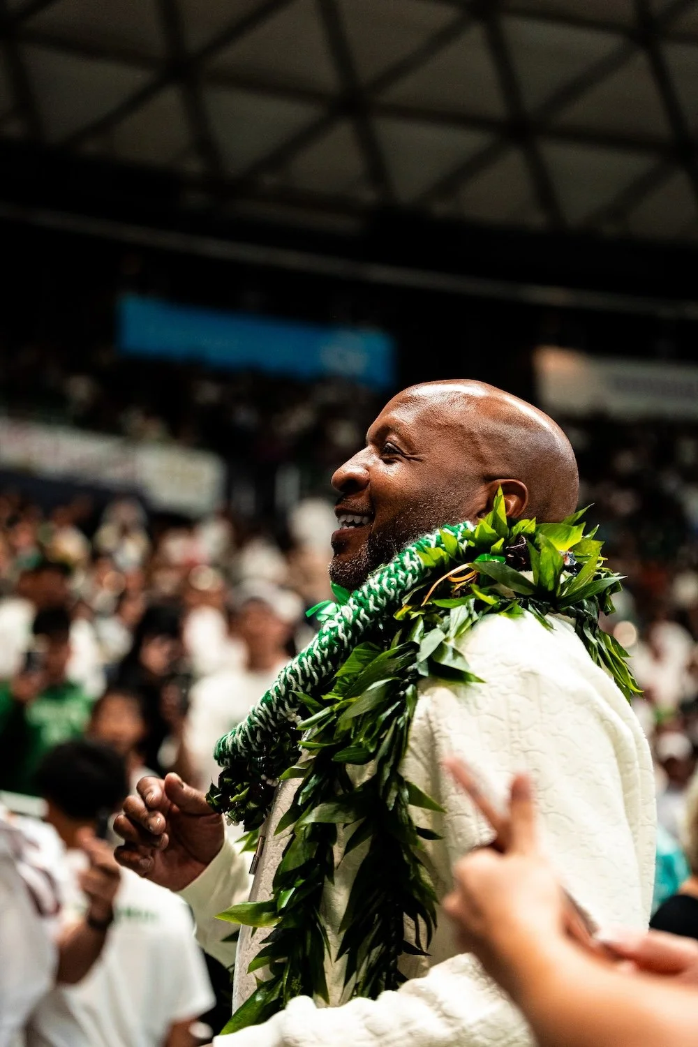 Nearly 8,000 fans packed the Stan Sheriff Center at Bank of Hawaiʻi Arena, creating a whiteout atmosphere to honor former Rainbow Warrior guard Anthony Carter. Carter’s No. 23 became just the second jersey retired in program history.